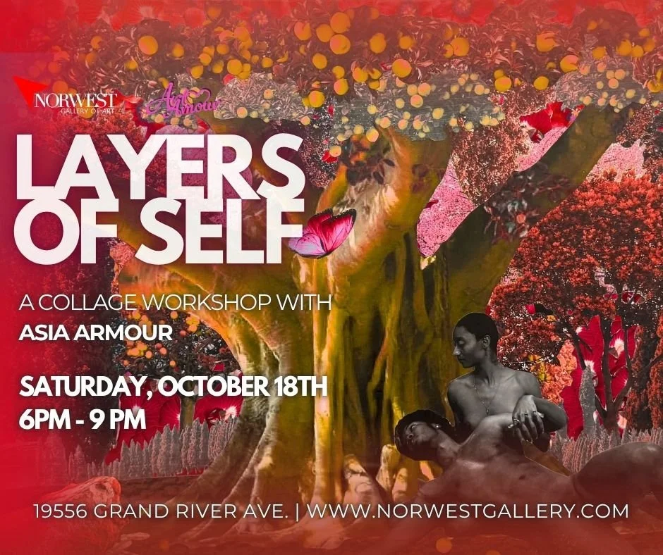 Join Cleveland-based artist Asia Armour for Layers of Self, a hands-on collage workshop at Norwest Gallery of Art in Detroit. Inspired by the Bare My Soul exhibition, this creative gathering invites you to explore your inner world through guided writing, paper collage, and storytelling.